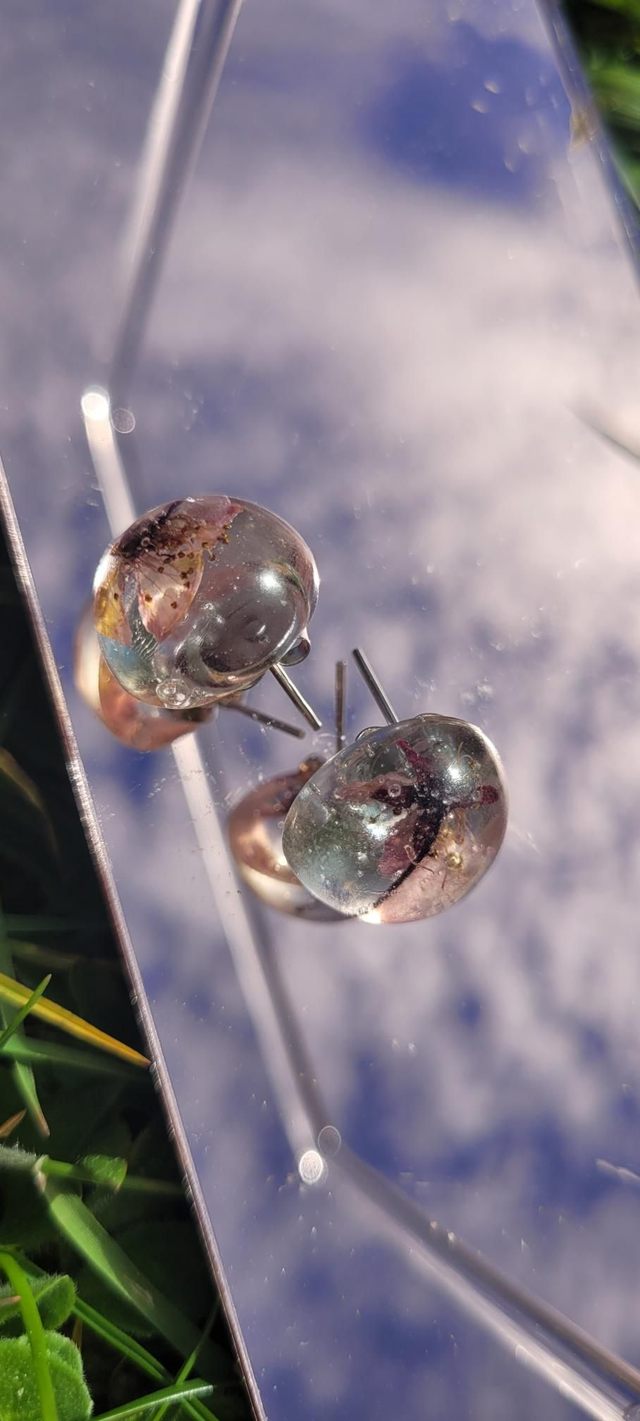 Ajoutez une touche florale et élégante à votre collection de bijoux avec nos boucles d'oreilles en résine époxy, ornées de délicates fleurs de cerisier.