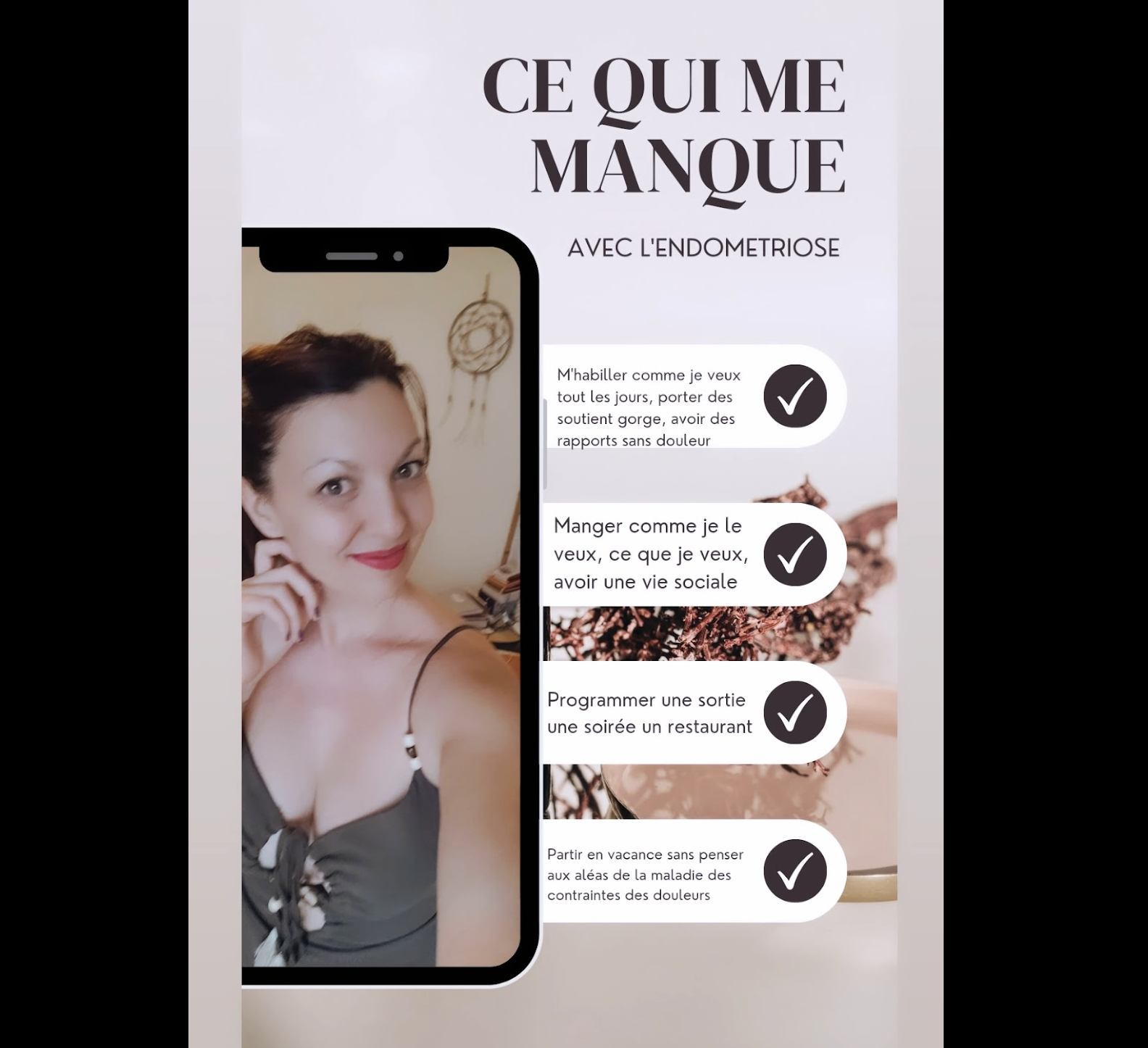 L'endométriose est une maladie chronique inflammatoire invalidante qui touche 1 femme sur 10. C'est un handicape invisible qui est encore trop peu/mal connu par les professionnels de santé même si depuis 1 an cela évolu en positif. Il n'existe pas à ce jour de réel traitement pour soigner l'endométriose, le premier parcours et médicamenteux puis une opération peut être une solution par la suite pour un soulagement, mais l'endométriose est chronique donc elle revient quand elle le veut et est là toute notre vie. Pour vivre avec elle nous devons avoir plusieurs rdv comme pour ma part du kiné, de la fasciathérapie, de la tkarthérapie, du yoga, de la piscine, une alimentation anti inflammatoire, etc